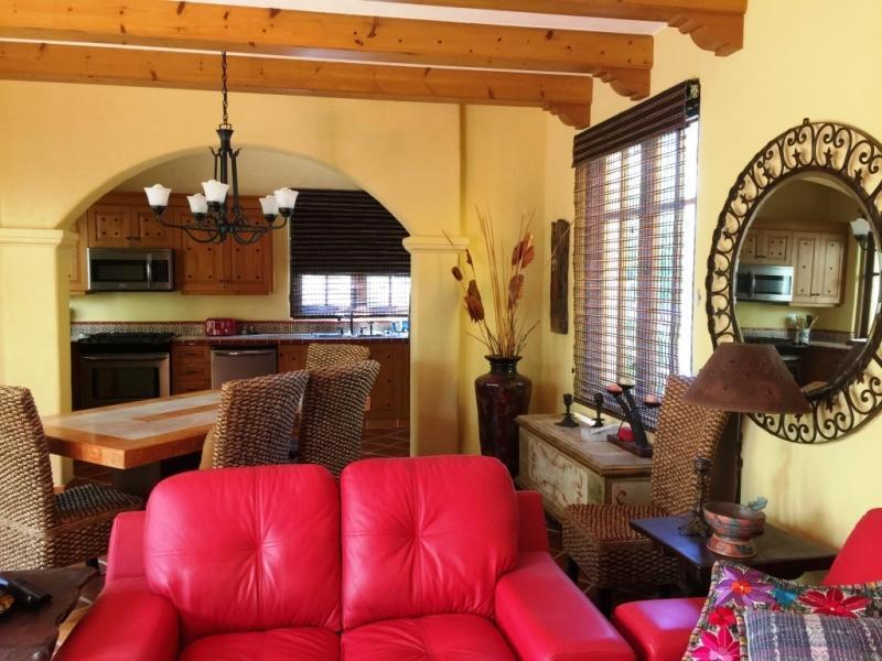 SOLD!! Large bright 2 bedroom, 2 bath, Bohemia model with lots of light, quiet area in the middle of Aqua Viva. Centrally located to AZUL Restaurant, new bridge to beach only minutes away, and incredible views of Sea of Cortez and mountains that will never change. Quality Construction, beautifully furnished, and ready for you to enjoy. Priced well below replacement value and nestled among large private homes. Make an appointment to view today!